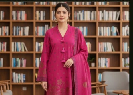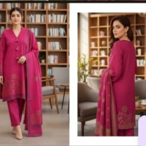Elevate your summer wardrobe with this exquisite Pink Jacquard Lawn 3-piece suit. The shirt is crafted from soft, breathable lawn with intricate jacquard patterns, offering a perfect blend of elegance and comfort. Delicate embroidery adds a subtle charm, while the matching lawn dupatta and tailored trouser complete a cohesive, graceful look. Ideal for casual outings, festive gatherings, or daytime events, this suit ensures effortless style and all-day comfort. Lightweight and easy to maintain, it’s a timeless piece that adds sophistication to your summer collection.