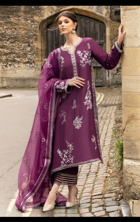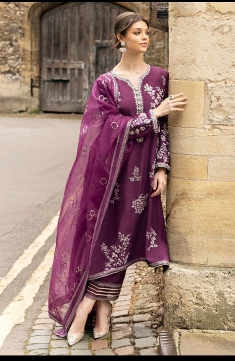Organza embroidered hand embellished luxury unstitched 3pc✓