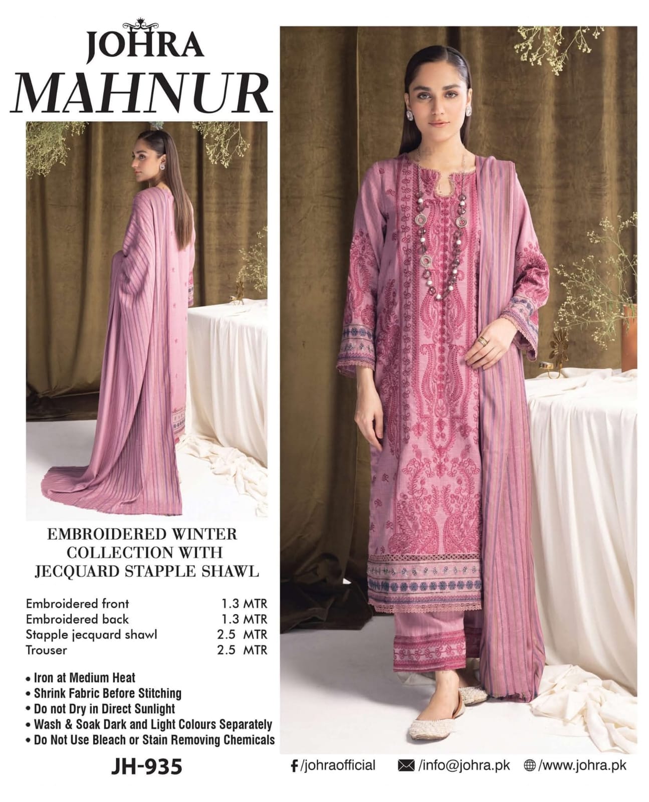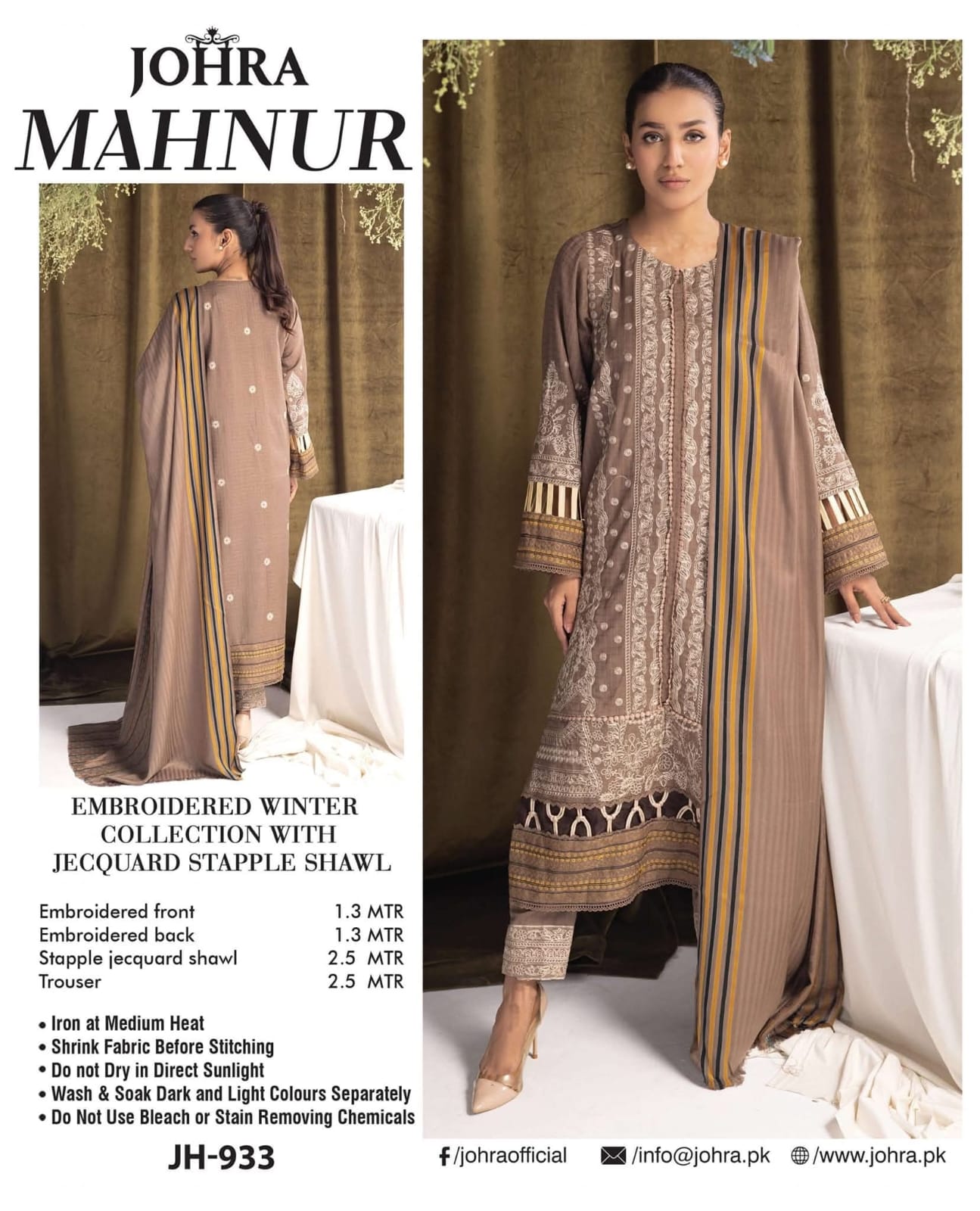 Experience timeless elegance with the Johra Winter Suit, crafted from premium quality winter fabric designed to keep you warm and stylish during the cold season. This beautifully woven suit features rich colors, soft texture, and delicate detailing that reflect Johra’s signature sophistication.