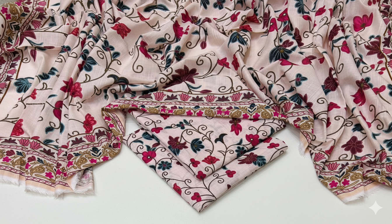 Step into winter elegance with our premium 3-piece khaddar suit, designed for the modern woman who values both style and comfort. Crafted from soft, high-quality khaddar fabric, this ensemble offers cozy warmth with a refined finish. The digitally printed shirt features artistic patterns and rich hues that exude sophistication, paired with a dyed trouser for a seamless look. The matching printed dupatta adds a graceful touch, completing your winter wardrobe in style.