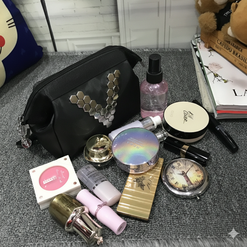 Compact yet roomy, this cosmetic bag is ideal for travel, handbags, or vanity organization. The elegant design makes it suitable for everyday use, keeping your beauty essentials neatly arranged and easily accessible. A perfect choice for ladies who love convenience with a touch of fashion.